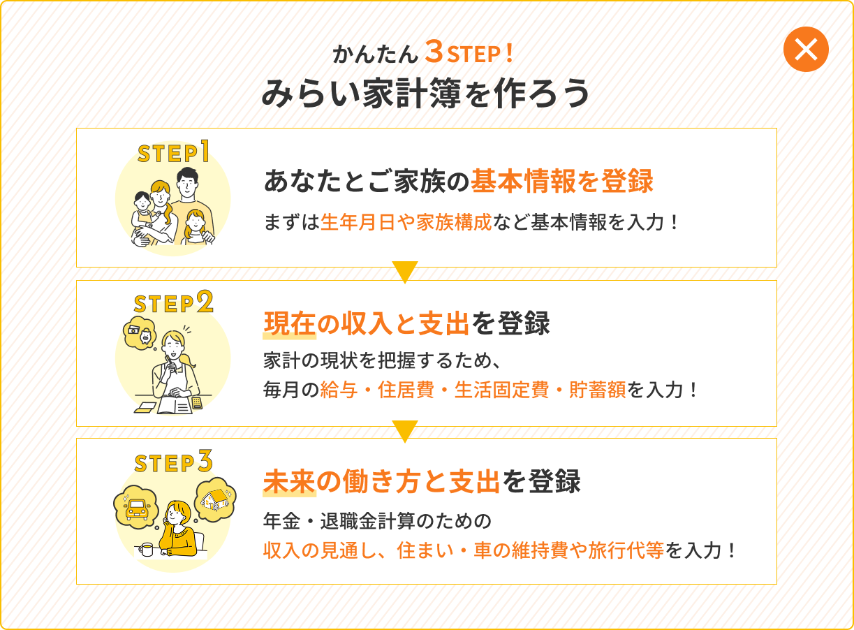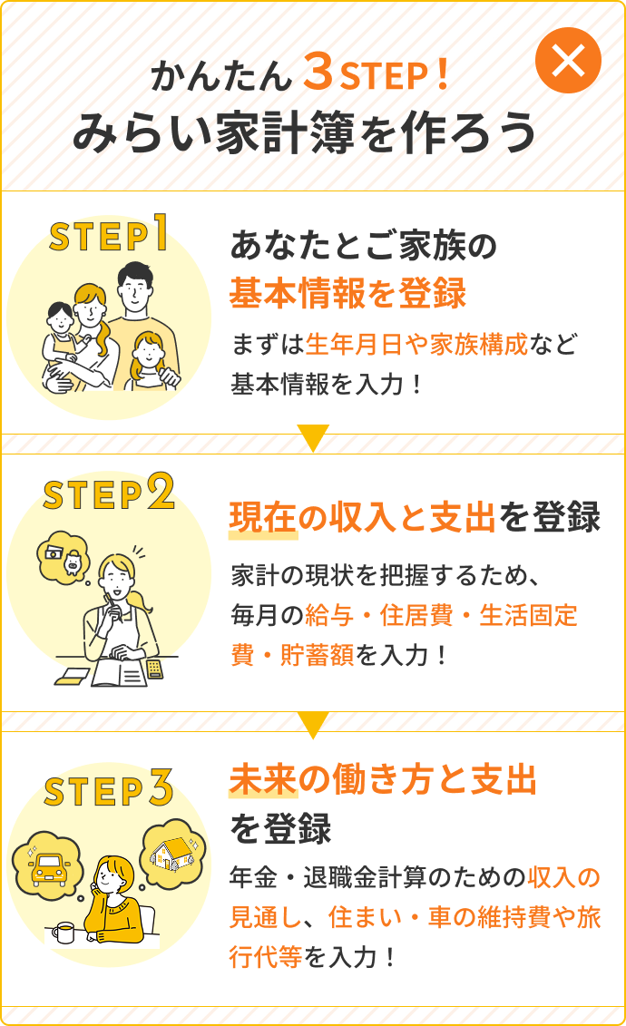シミュレーション結果を保存し、何度でもカスタマイズできるようにするために、メールアドレス・パスワードの登録をお願いします。